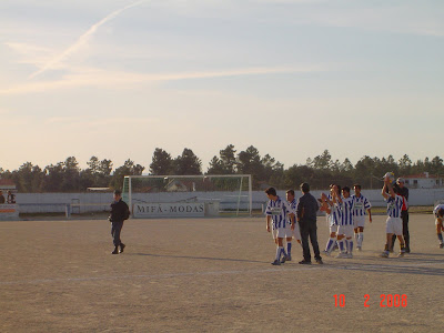 A primeira parte do jogo foi muito disputada a meio campo com as equipas a chegarem poucas vezes às áreas contrárias. O nosso meio campo ia conseguindo ganhar muitos lances e com muita cabeça e tranquilidade conseguia soltar os seus jogadores, em jogadas simples e objectivas. Era o que se pretendia, a nossa equipa jogava duma forma adulta e esclarecida sem fazer aquilo que as gentes de Porto Alto julgavam, uma equipa remetida à defensiva.